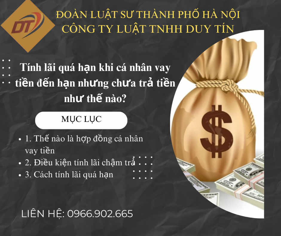 Trong thực tế đời sống hàng ngày, xảy ra nhiều trường hợp cá nhân vay tiền đã đến thời hạn trả, nhưng cá nhân vay tiền (bên vay) chưa thực hiện nghĩa vụ trả tiền, các bên lại không biết cách tính lãi với nhau như thế nào cho phù hợp dẫn đến mâu thuẫn, thậm chí tranh chấp. Hãng Luật Duy Tín sẽ giải đáp vướng mắc này qua bài viết dưới đây: